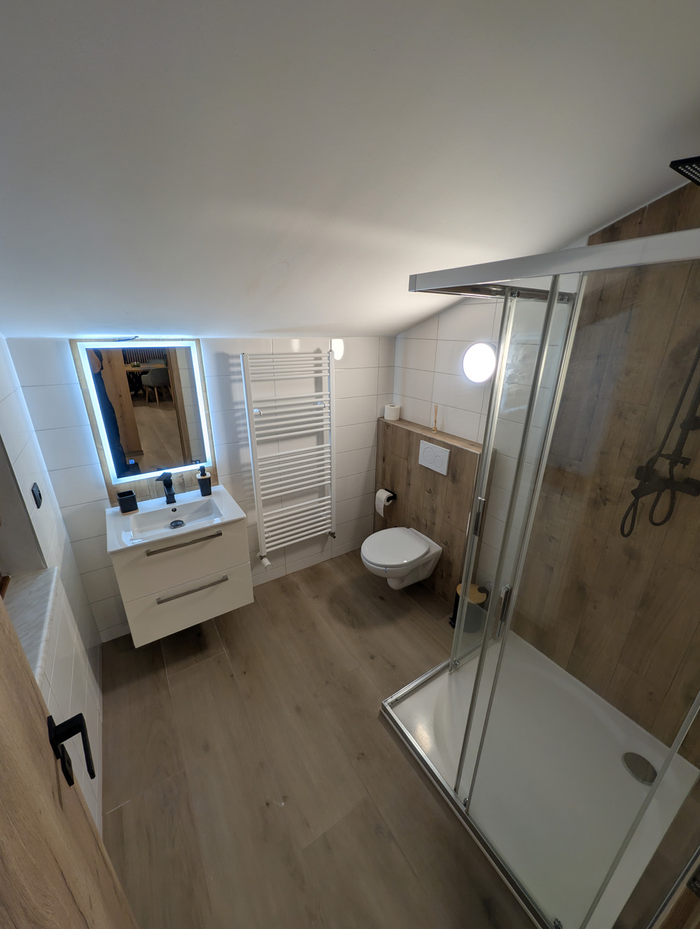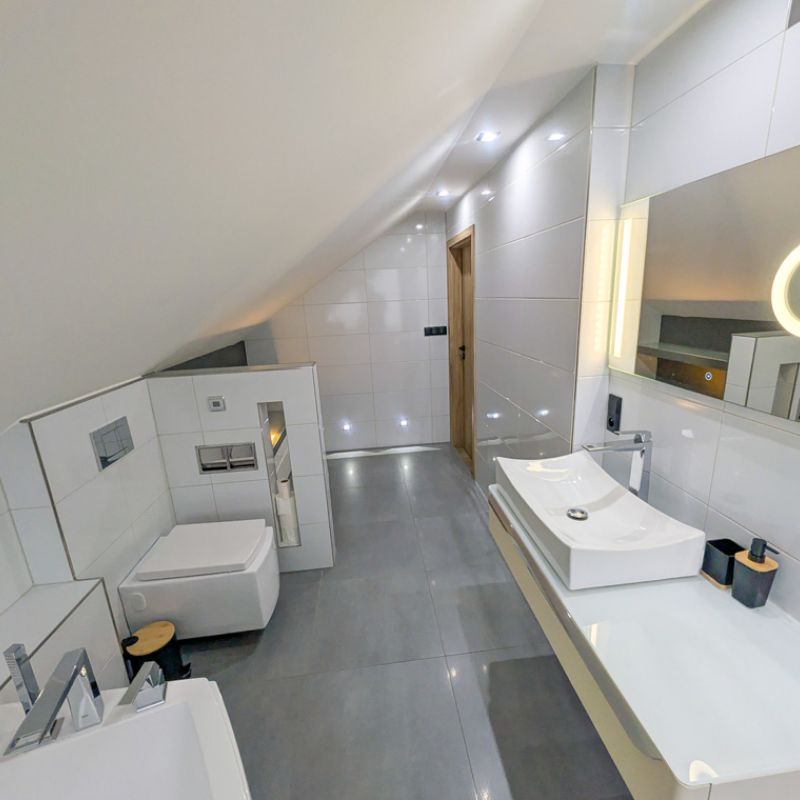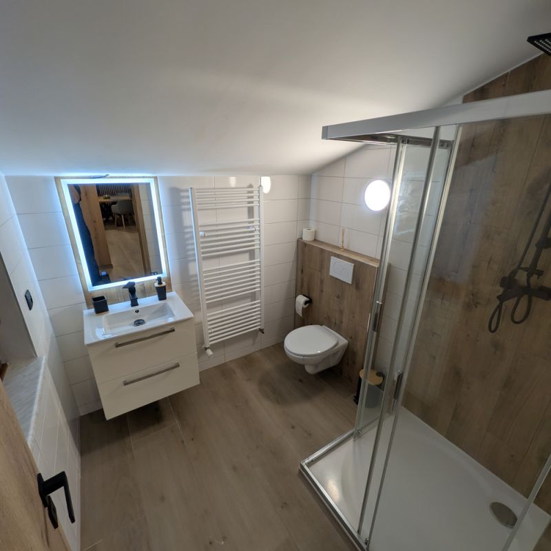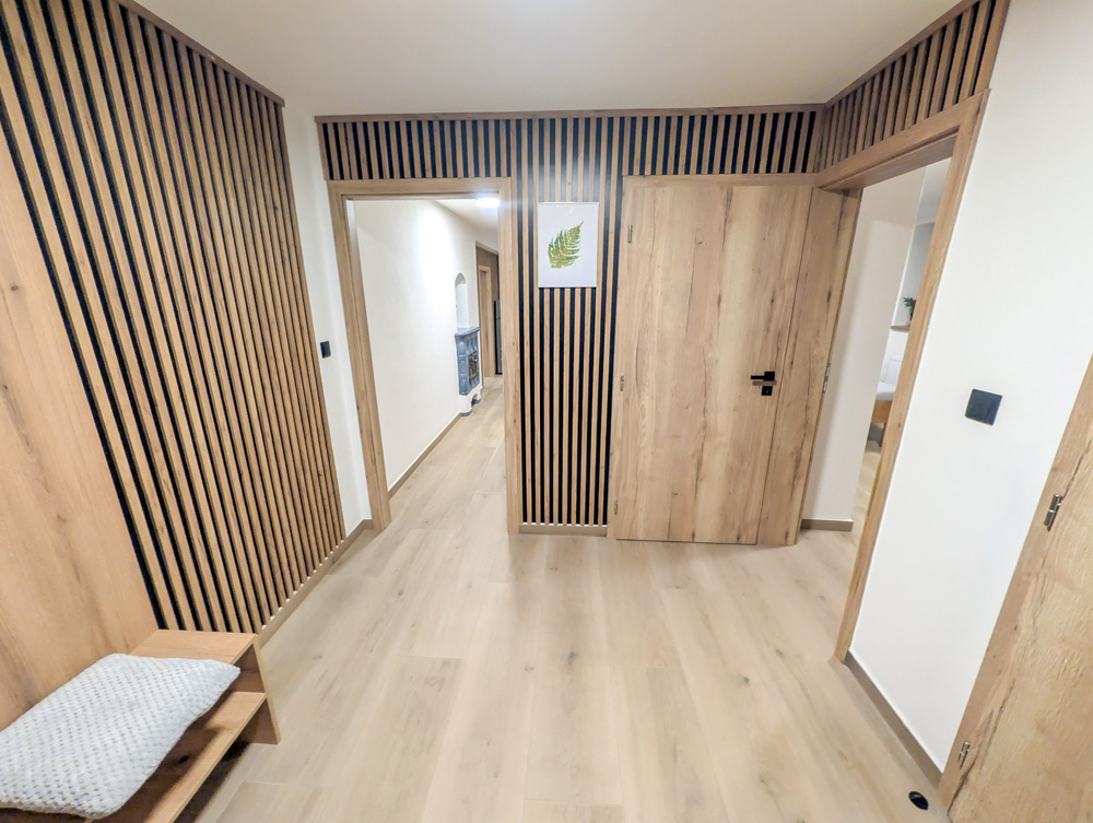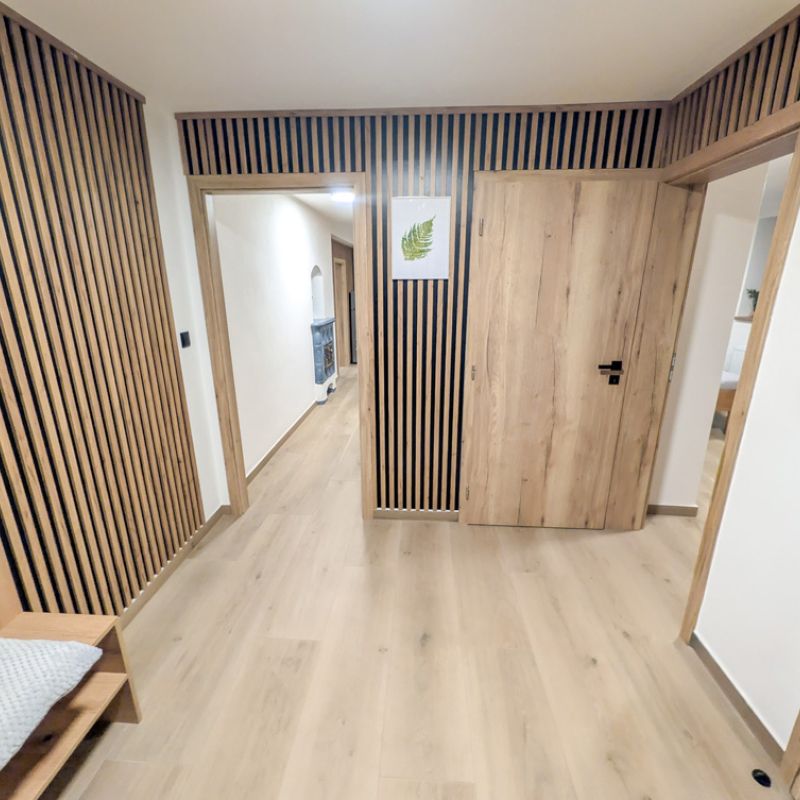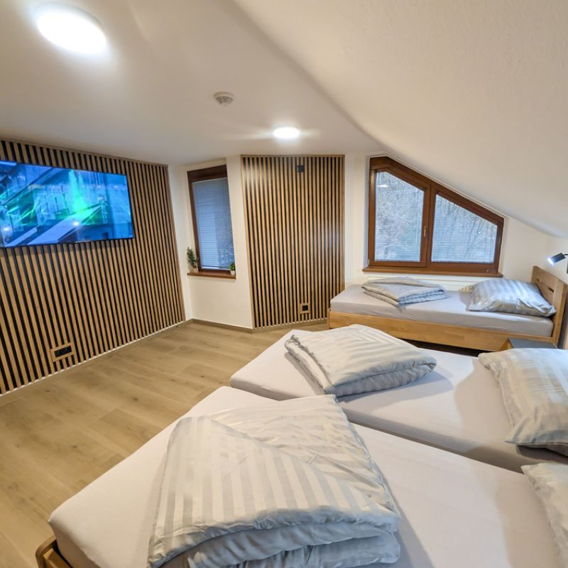 Apartmán 1 nabízí moderní a pohodlné ubytování pro až 6 osob v podkrovním prostoru o rozloze 80 m².