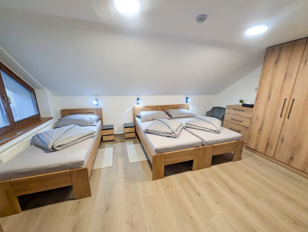 - rozložení pokojů a lůžek: 1x 3 lůžka a 1x 2 lůžka